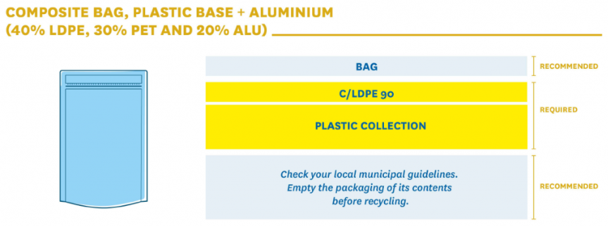 Packaging is defined as composite when it is made up of different packaging materials which cannot be separated by hand. Such packages may be the result of processing (coating, metallic treatment, rolling, lacquering) or laminating techniques.